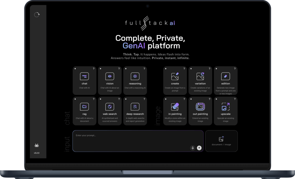 FullStack AI Platform is the most advanced and versatile iteration of our AI infrastructure stack, designed to help teams turn ideas into production at scale. With native support for LLMs, RAG pipelines, copilots, and low-code AI applications, it provides everything needed to build, deploy, and run real-world AI solutions across on-premise, hybrid, or cloud environments. FullStack AI includes reasoning and audio capabilities — making it the ideal foundation for any organization seeking to harness the full power of AI without the complexity.